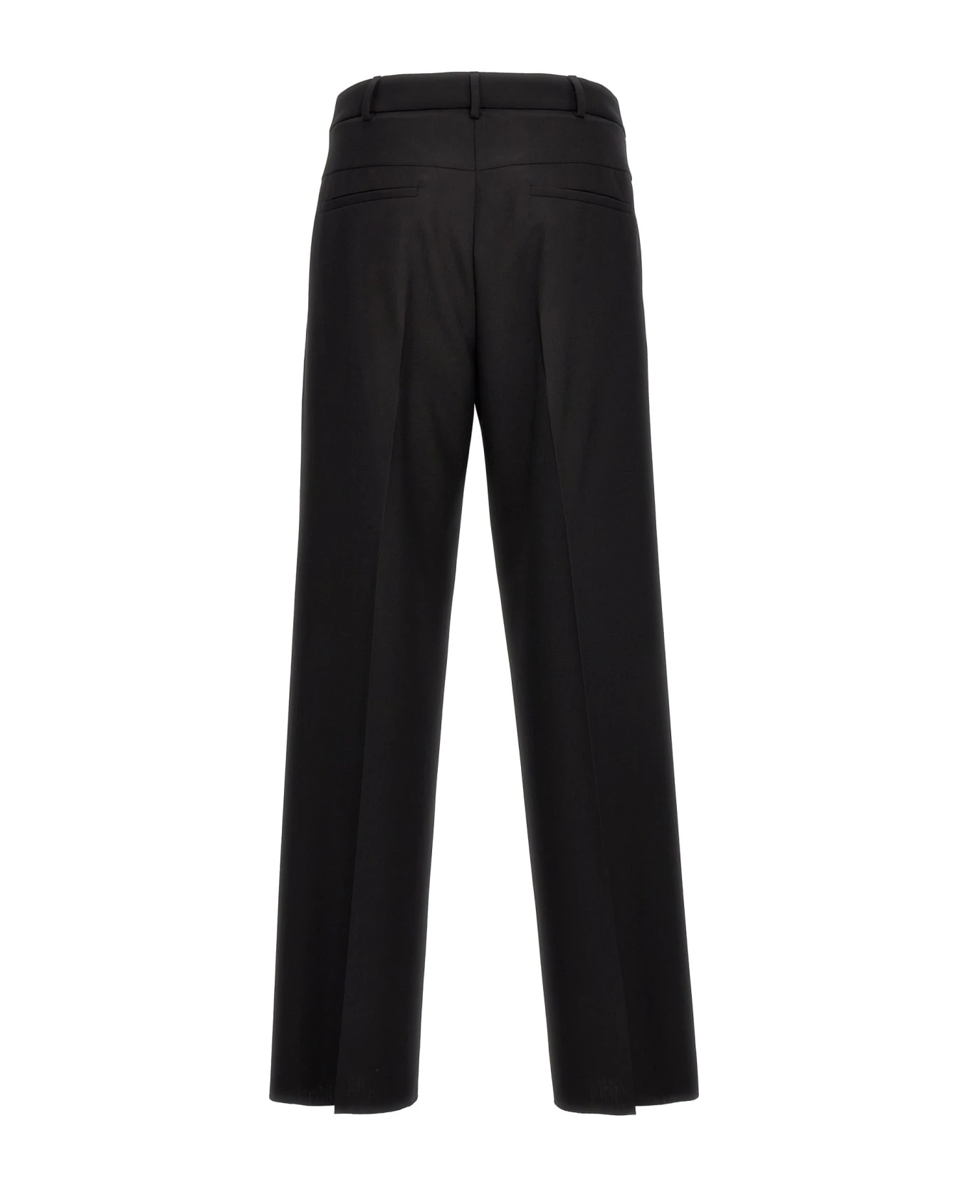 Formal trousers in wool with central crease, zip and hook closure.