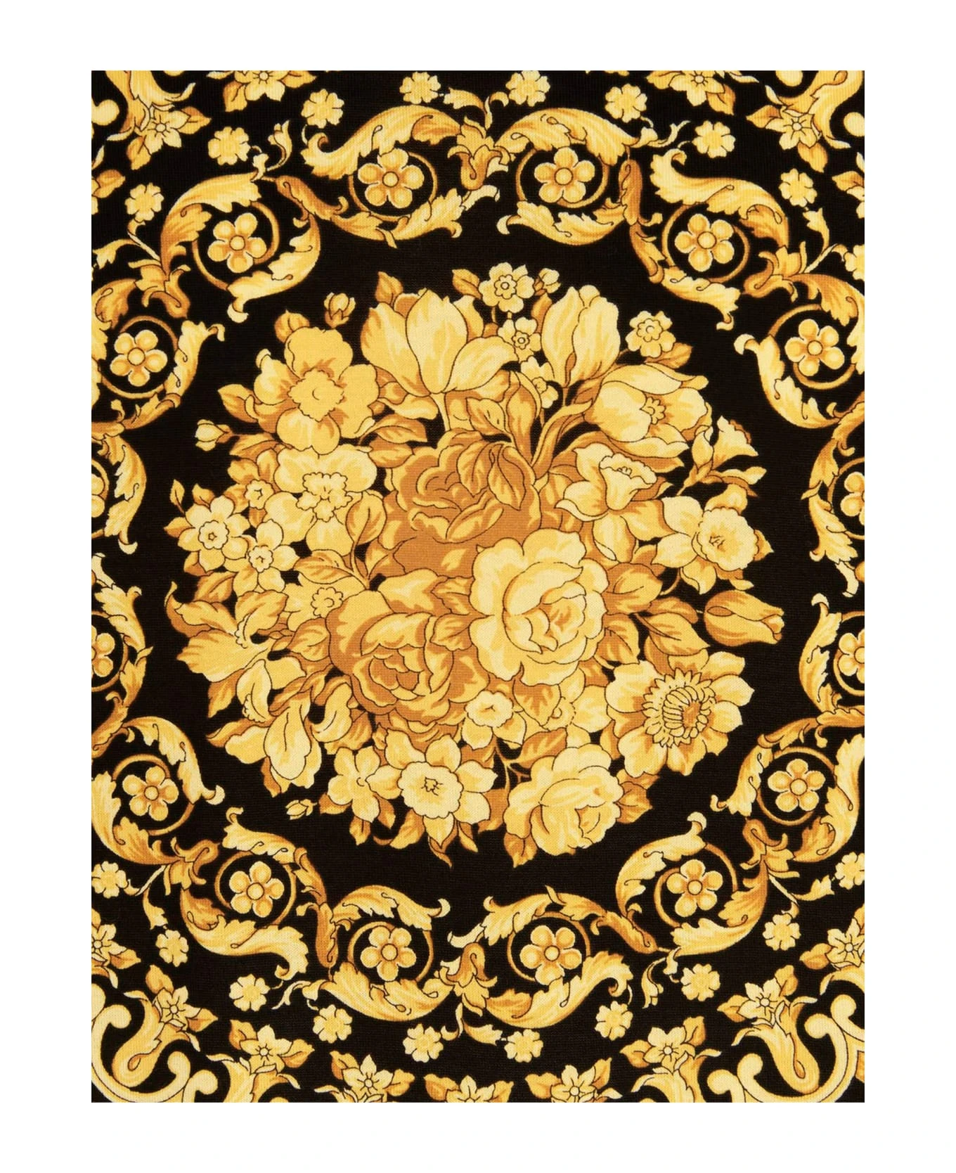 Cotton, crewneck t-shirt with all over ‘Barocco’ print, and short sleeves.