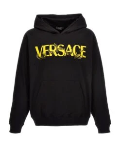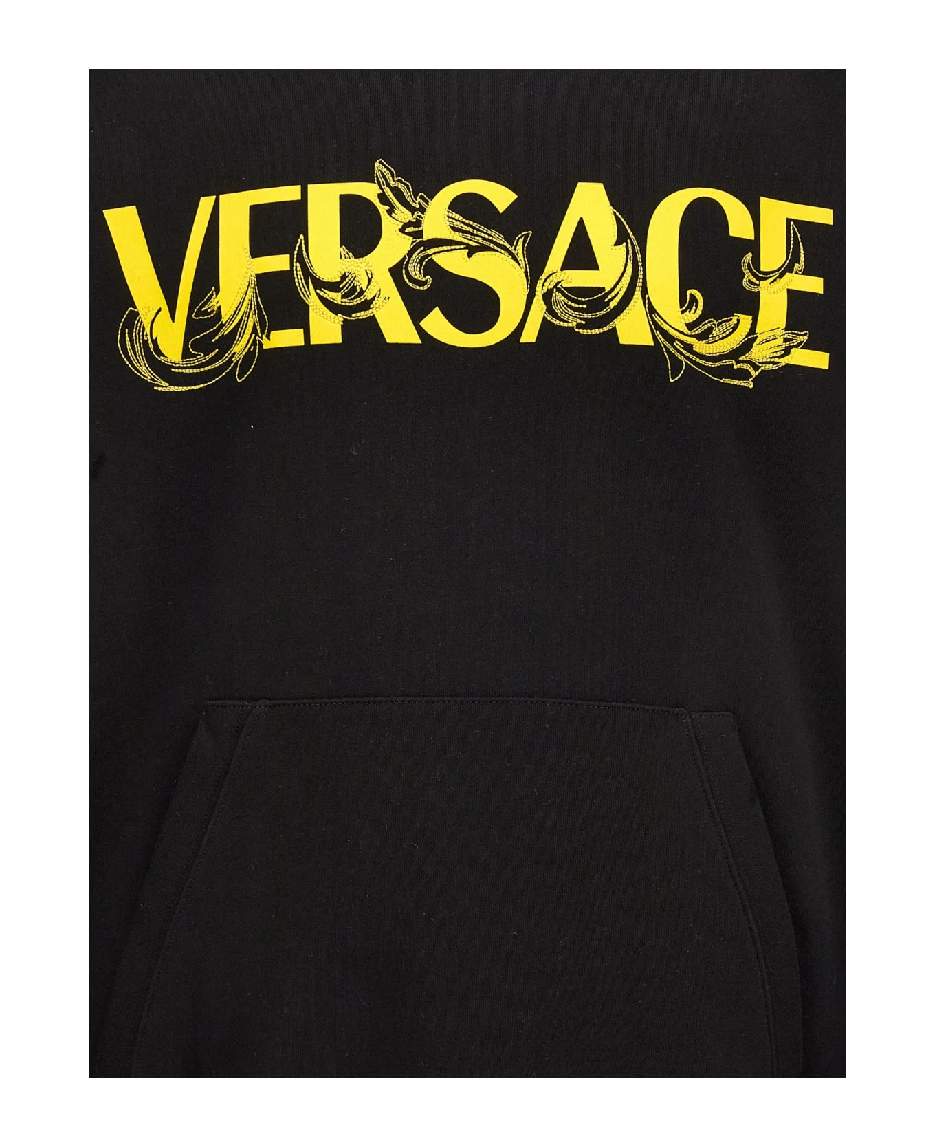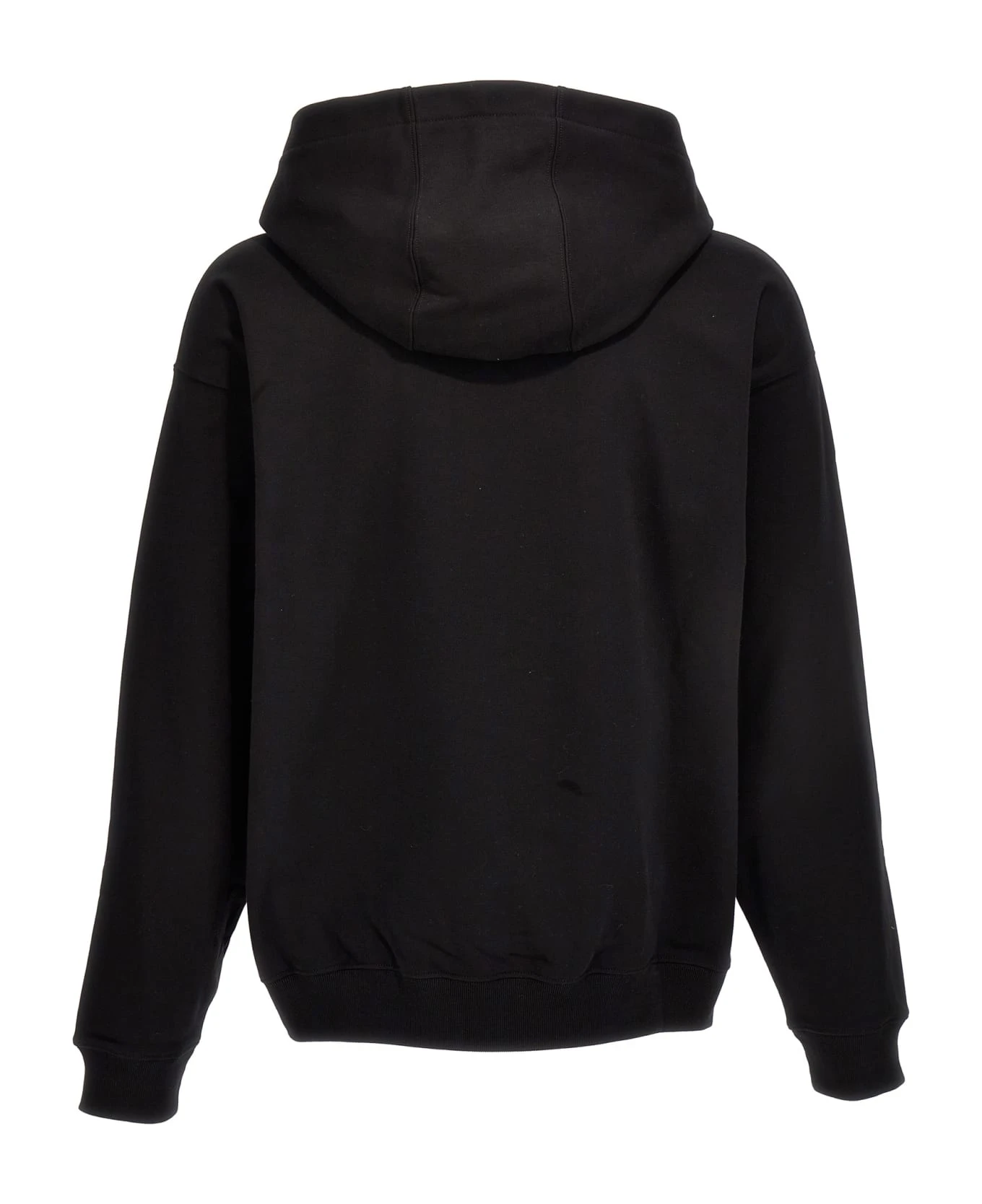 Cotton hoodie with logo print, front embroidery, a kangaroo pocket, and long cuffed sleeves.