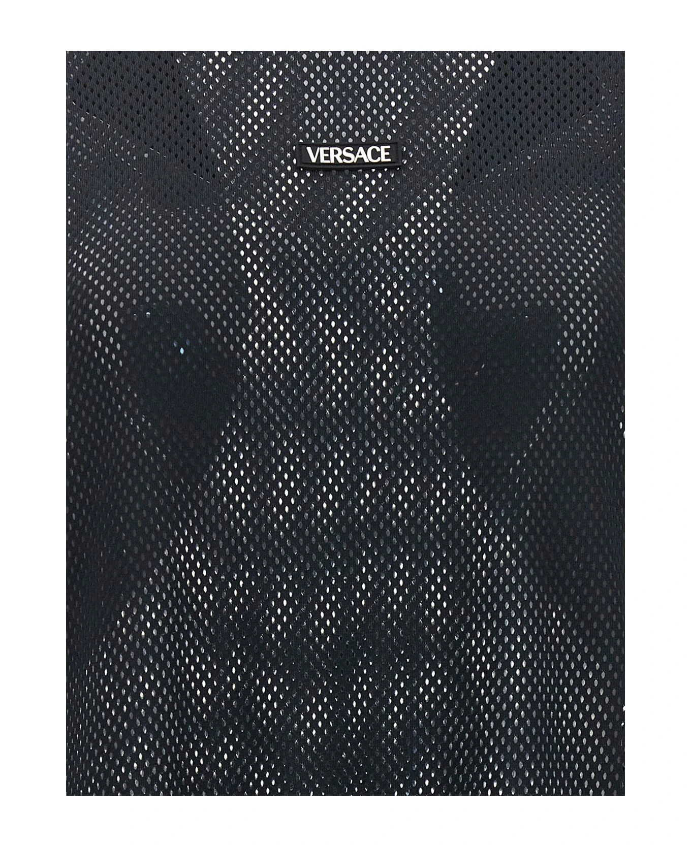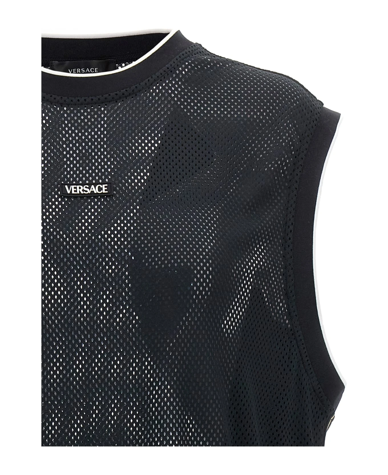 Mesh fabric tank top with ‘Greca’ print side bands, a front logo patch, crewneck, and a sleeveless style.