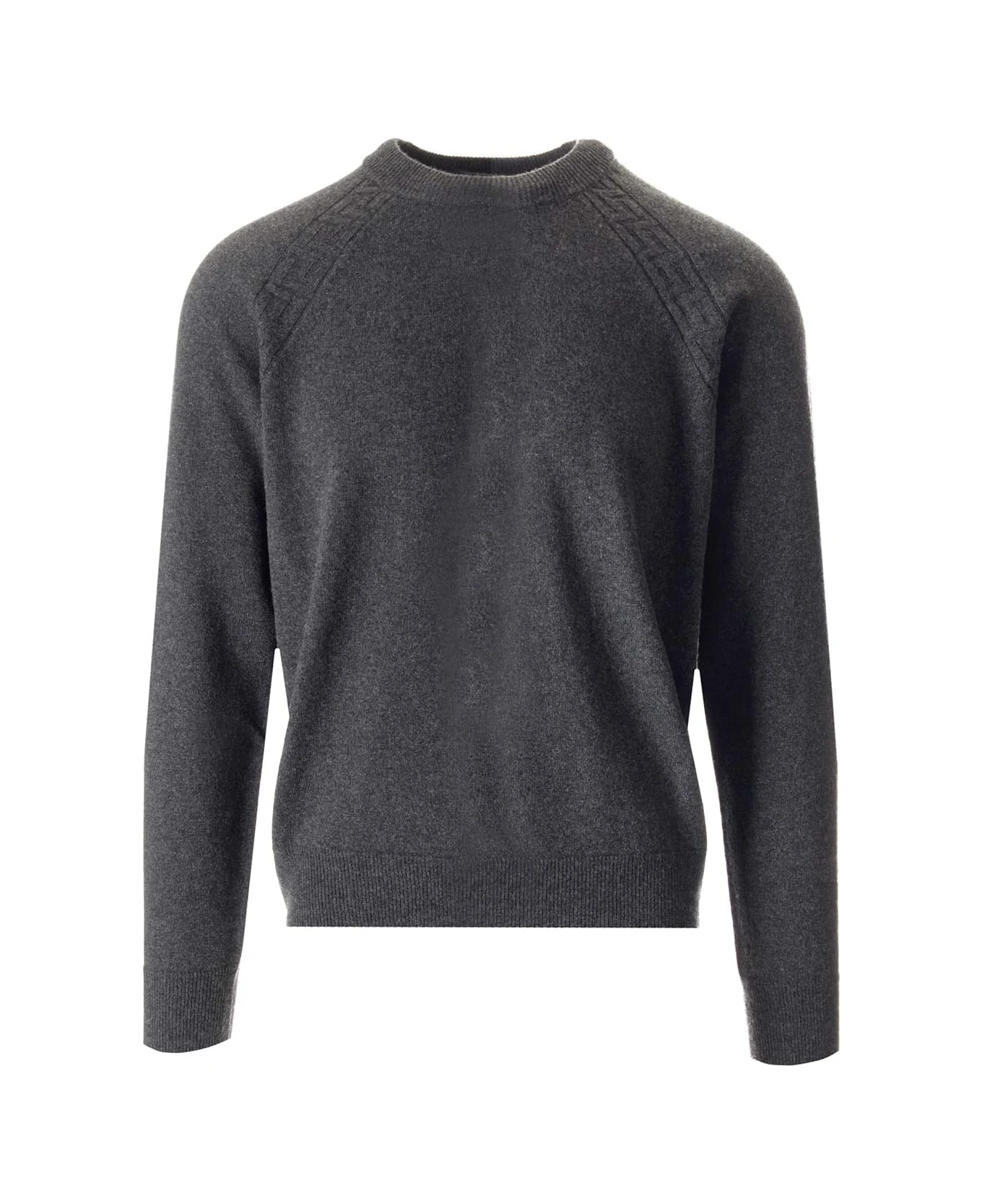 Grey “La Greca” sweater from Versace in cashmere, harness with “La Greca” motif, crew neck, long sleeves, ribbed collar, cuffs and bottom.
