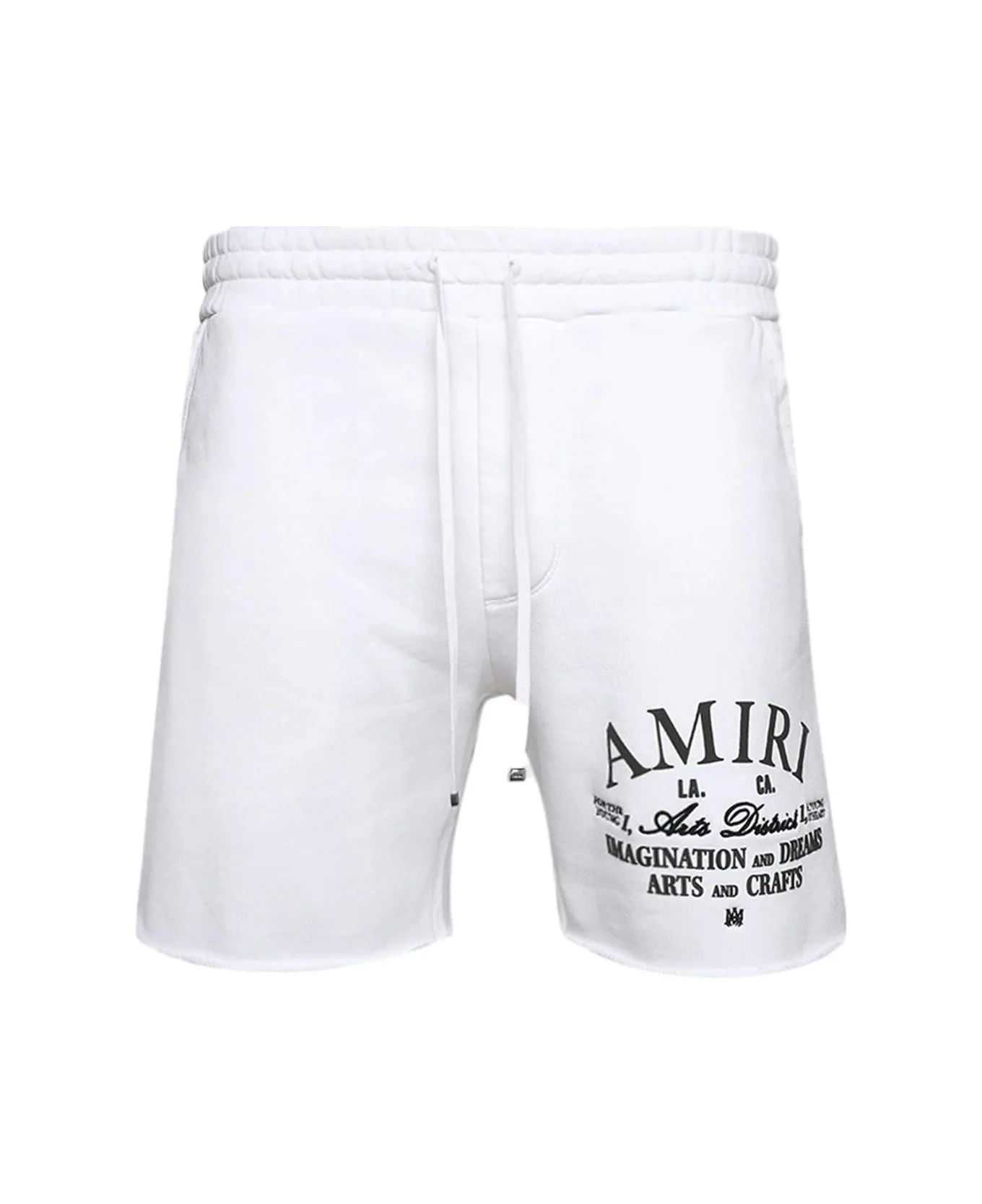 Amiri shorts in white cotton with elasticated waist and contrasting Amiri Arts District print on front bottom.